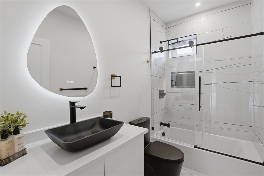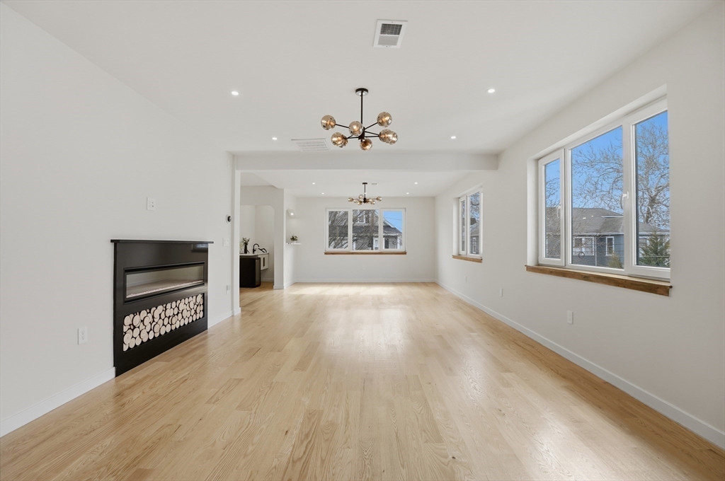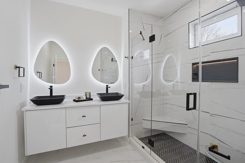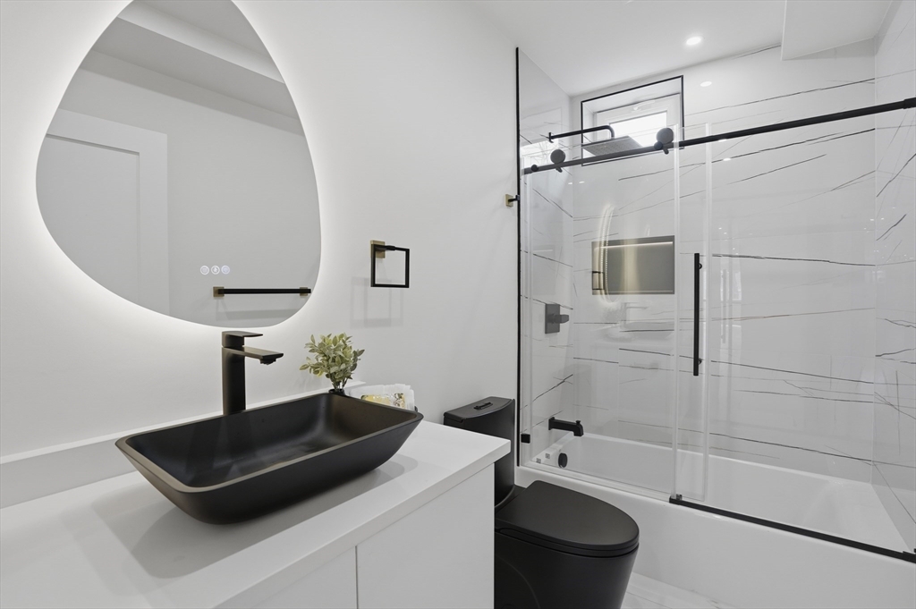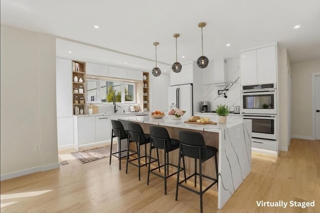 BEAUTIFULLY RENOVATED two-family offering exceptional design, expansive layouts, and high-end finishes throughout for multigenerational living or extended households seeking flexibility. Each unit features sun-filled open-concept living and dining areas with fireplaces and oversized windows, flowing into stunning kitchens with center islands, stone countertops, custom cabinetry, and premium fixtures perfect for entertaining. Spacious bedrooms include walk-in closets and designer baths with sleek tile work and glass showers. The upper unit extends to a bonus loft level ideal for a home office, guest suite, or additional living space. Additional highlights include central air, in-unit laundry, separate fenced yard areas, and a two-car garage with dedicated sides plus off-street parking. Conveniently located off of Main St, near Watertown Square, Arsenal Yards, the Charles River Greenway, Mount Auburn Street, and easy access to Routes 20, 16, and the Mass Pike for commuting into Boston.